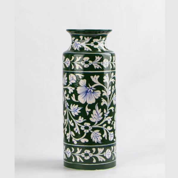 The vase is crafted from high-quality pottery material, ensuring durability and a refined artistic finish. Its tall and stylish design makes it perfect for displaying fresh flowers, artificial flower arrangements, or decorative stems. The smooth surface and handcrafted detailing reflect authentic craftsmanship and cultural artistry.