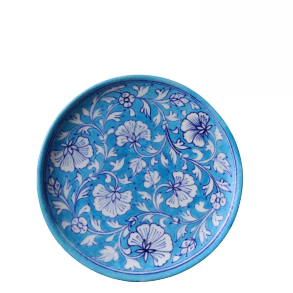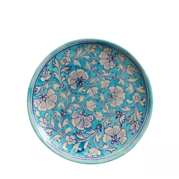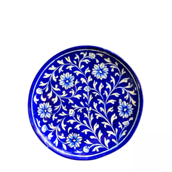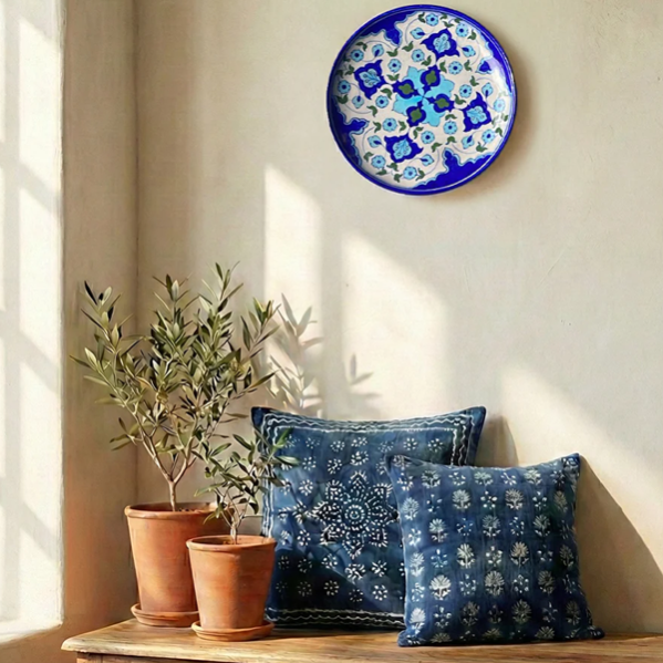Beautiful handmade Jaipur Blue Pottery wall plate crafted by skilled artisans. Designed with traditional Rajasthani floral and artistic patterns, it adds an elegant and royal touch to your home décor. Perfect for wall decoration and gifting purposes.